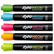 Add a splash of bold color to windows, glass materials, whiteboards and other surfaces with Expo Neon Window Markers, which allow you to write on both black and white surfaces for eye-catching color and detail.