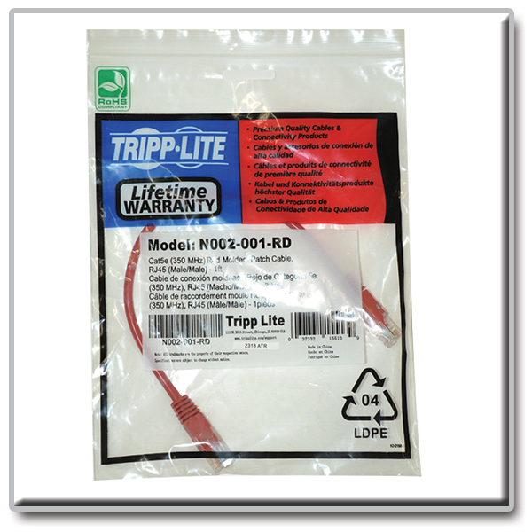For peace of mind, this one-foot Tripp Lite Cat5e 350MHz Molded Patch Cable comes backed by a lifetime warranty. The N002-001-RD is manufactured in compliance with strict RoHS specifications, reflecting Tripp Lite’s commitment to environmental responsibility.