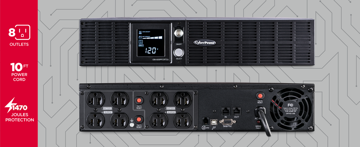 This unit is equipped with eight battery backup and surge protected outlets to keep your equipment protected from power surges and spikes.