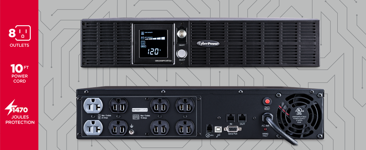 This unit is equipped with eight battery backup and surge protected outlets to keep your equipment protected from power surges and spikes.