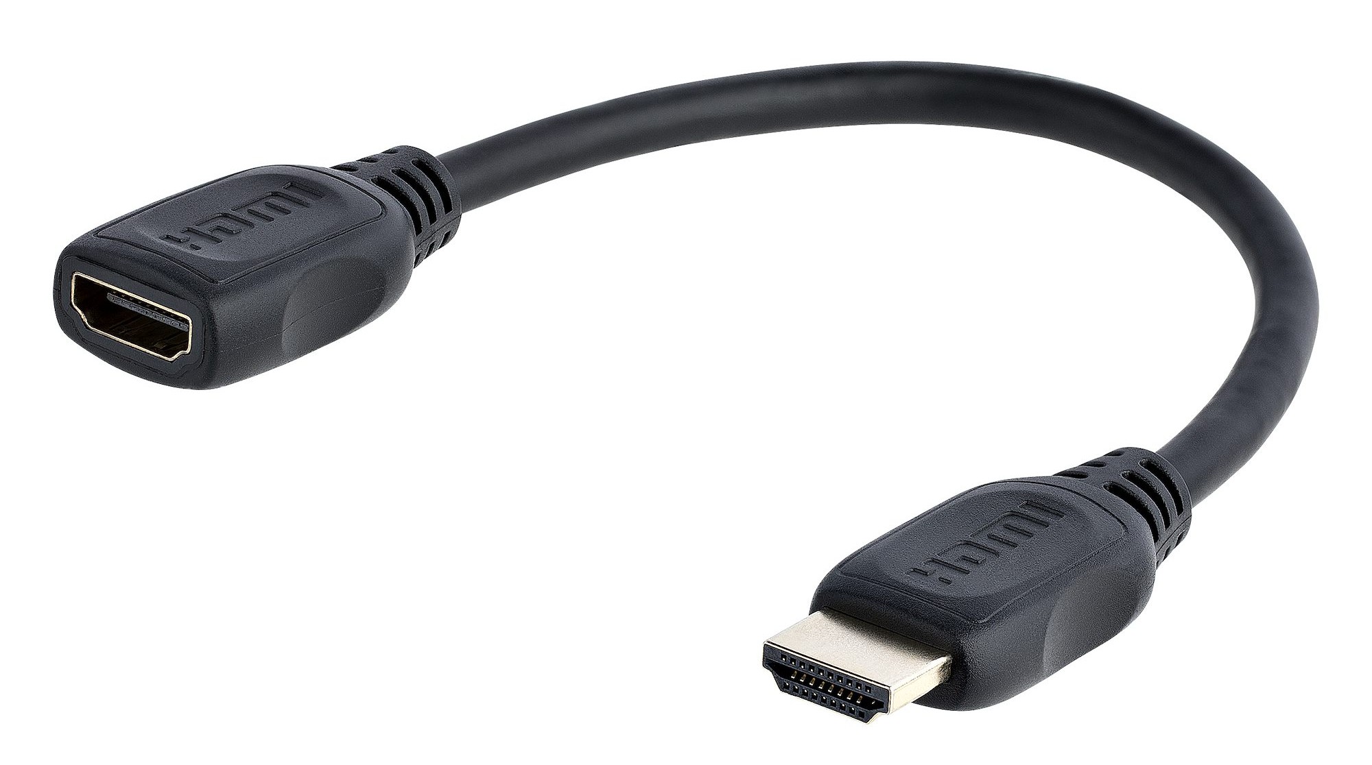 The HDMIEXTAA6IN HDMI® Port Saver Cable is a 6-inch HDMI cable designed to prevent wear and tear on the HDMI port on your computer or A/V device (Blu-Ray player, A/V receiver etc.). The port saver cable features 1 HDMI (male) connector and 1 HDMI (female) connector, which extends the HDMI (female) port from a video card or A/V device away from the device itself, relieving the stress of repeated HDMI plug insertions and removals and transferring the weight of typical HDMI cable connection away from the device port.