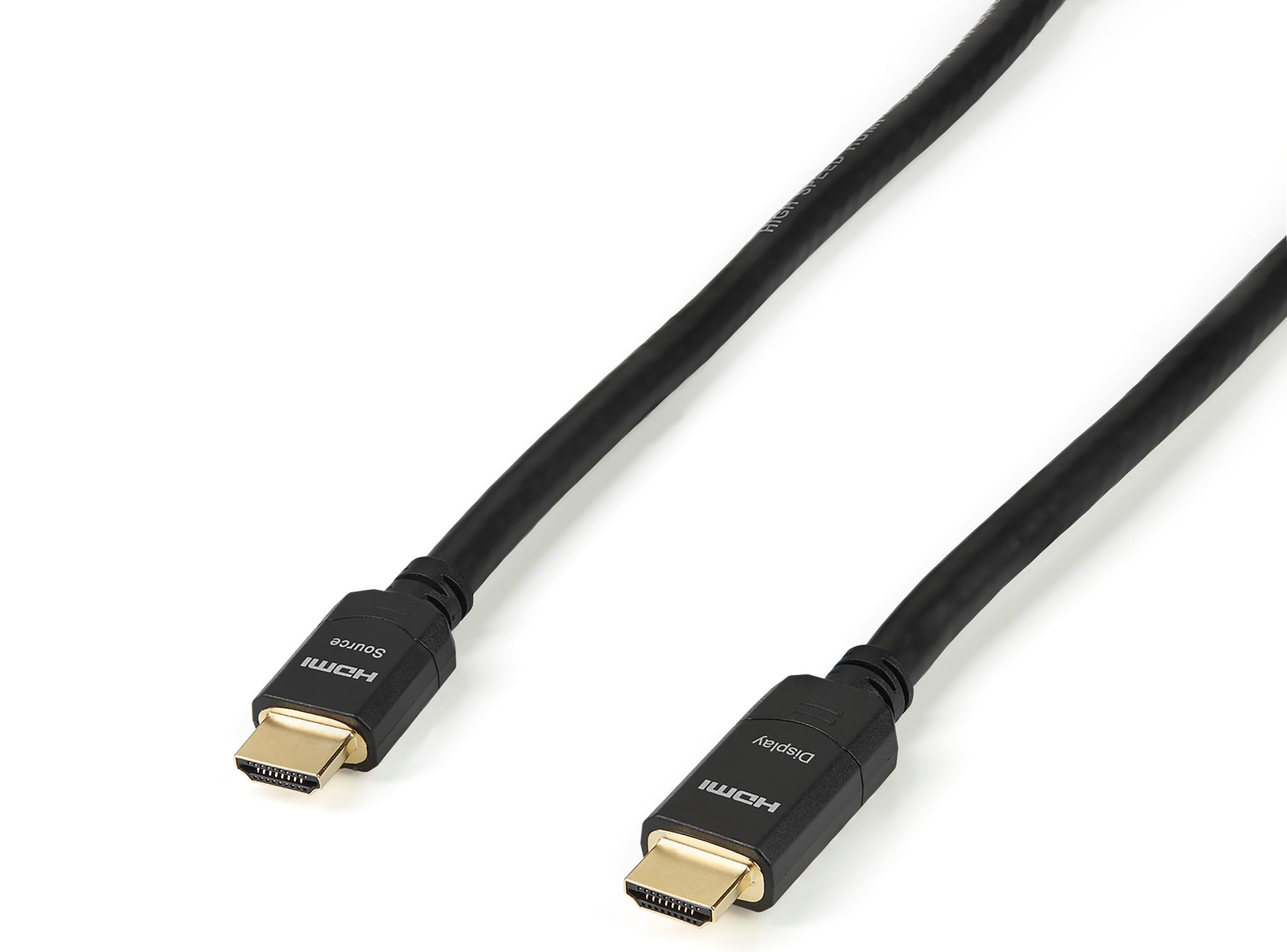 The HDMIMM80AC Active High Speed HDMI® Cable features 2 HDMI (Male) gold connectors and has a built-in, active signal booster that provides connection distances up to an astounding 25 meters (80ft) and does not require an external power adapter - an ideal solution for connecting distant HDMI-enabled devices such as Blu-Ray players, game consoles, HDTVs, DVD players and more.