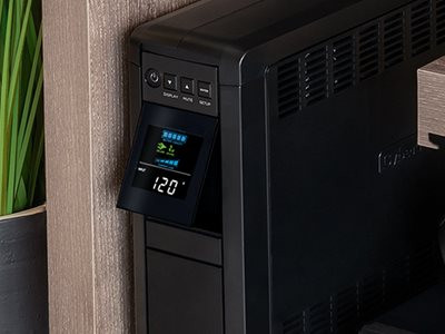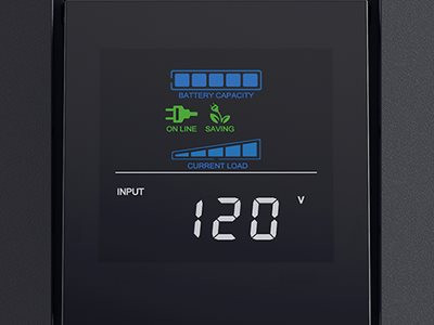The user-friendly multi-function LCD control panel features a color LCD to display immediate, detailed information on the UPS battery and power conditions.
