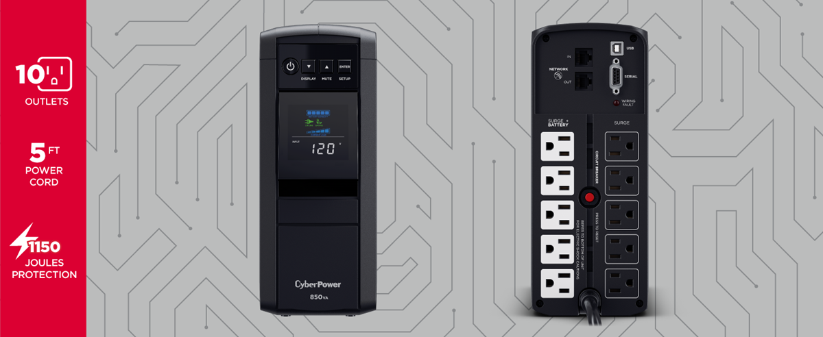 This unit is equipped with five surge and battery protected outlets and five surge protected outlets to keep your equipment protected from power surges and spikes.