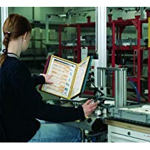 The Durable InstaView Desktop Reference System is a practical solution for keeping frequently used reference documents close at hand. The system consists of 10 letter-size, non-glare poly panels (20 viewing sides) with rugged outer frames, five snap-on tabs, a panel holder, a wire desk stand, and two snap-on connectors. To expand the system, simply purchase additional InstaView units and use the connectors included to link units together.
