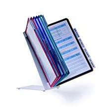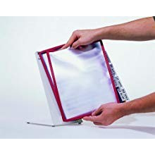 The InstaView Desktop Reference System from Durable is economical, functional, and an ideal organizational tool for customer service, sales, and general office use. It is easily expandable by connecting additional systems with each other (connectors included) and features glare-free polypropylene sleeves with rugged frames in assorted colors - two each in red, black, yellow, blue, and green. Also available with black frames (DBL5612-01). Includes desk stand, 10 sleeves (20 viewing sides) and 5 snap-on tabs.