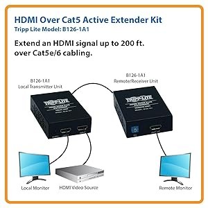 With no software or drivers to install, the B126-1A1's plug-and-play setup gets your application up and running faster. Simply connect the local unit to the video source, the remote unit to the display and connect the units to each other to start watching as the B126-1A1 provides crystal clear resolution. The B126-1A1 is compatible with all HDMI video sources and all computer operating systems.