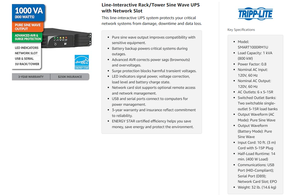 - ENERGY STAR Certification: This UPS system has ENERGY STAR certification. It helps you save money, save energy and protect the environment by meeting strict efficiency guidelines set by the U.S. Environmental Protection Agency.
