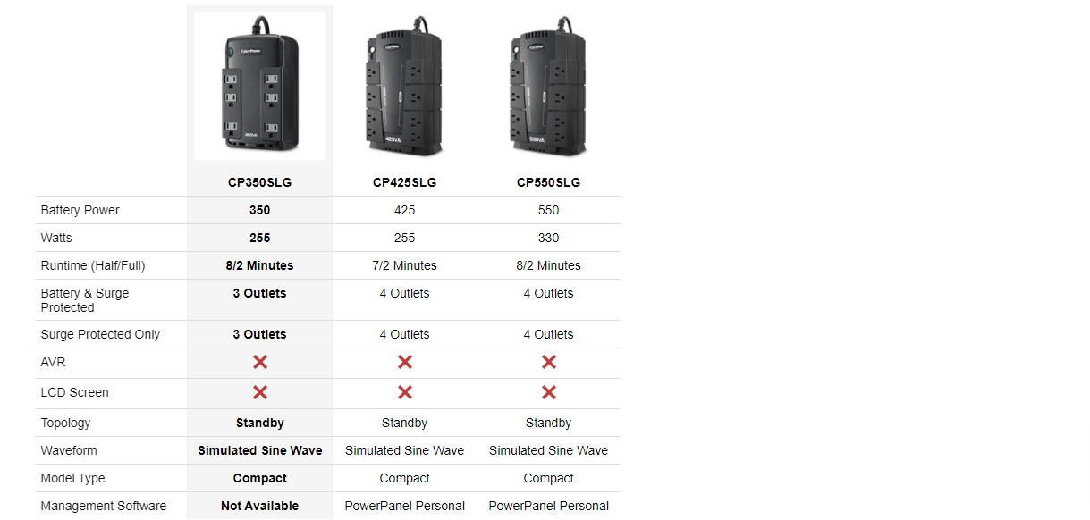 The CP350SLG is equipped with two widely spaced outlets to accommodate large transformed-based plugs without compromising the access of other outlets