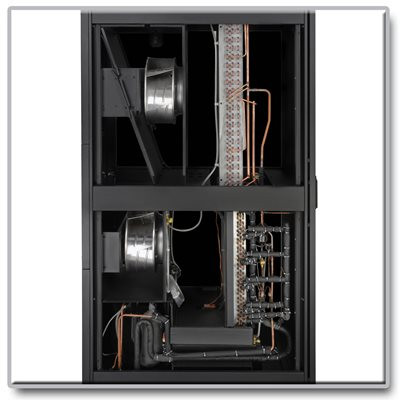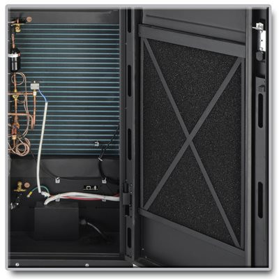 The SRCOOL33K has a cooling capacity of 33,000 BTU/h (9.7kW) and uses environmentally friendly R410A refrigerant to comply with worldwide standards. Its row-based airflow works to maximize the efficiency of a hot aisle/cold aisle configuration by delivering chilled air high in the cold aisle and taking in warm air from low in the hot aisle to promote top-to-bottom temperature uniformity. In addition to cooling, the SRCOOL33K filters and dehumidifies air to further enhance equipment performance.