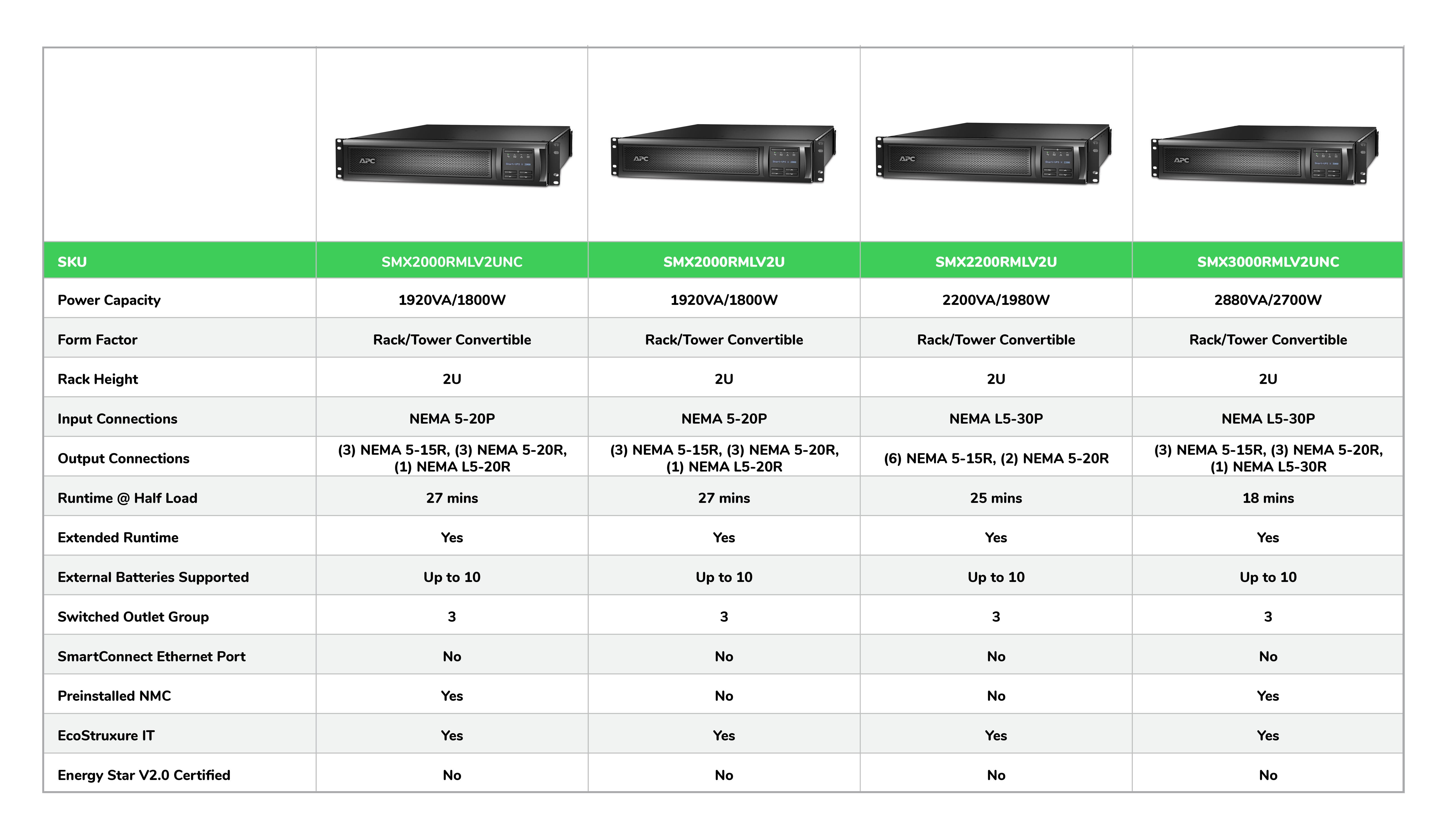 APC’s patented ‘green’ mode bypass components that perform AVR when not needed. This results in higher efficiencies across a wide range of load conditions.