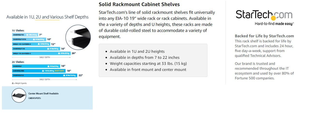 Remember to include the weight of the shelves when totaling the weight of your equipment to ensure you are within the rack’s weight capacity.