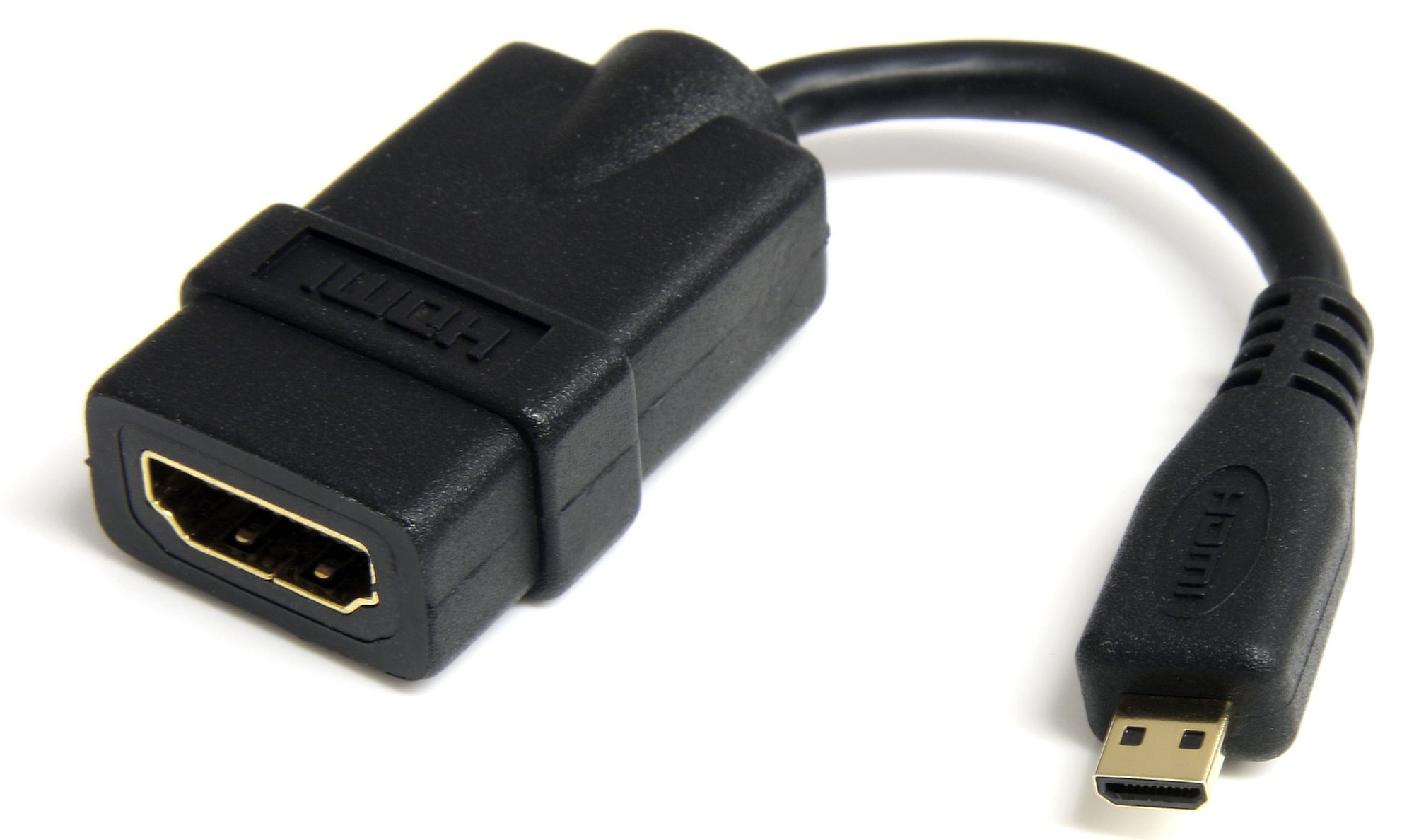 With a Standard HDMI female connector (type A) on one end and an HDMI Micro (type D) male connector on the other, you can easily make this conversion and connect to computer monitors, HDTV or HDMI projectors virtually everywhere you go.