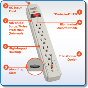Maker of the legendary Isobar, Tripp Lite is the smart choice for protecting your valuable equipment. This surge protector defends computers and electronics from damaging surges and disruptive line noise. If it is ever damaged by a surge, Tripp Lite will replace it, and connected equipment is covered too.
