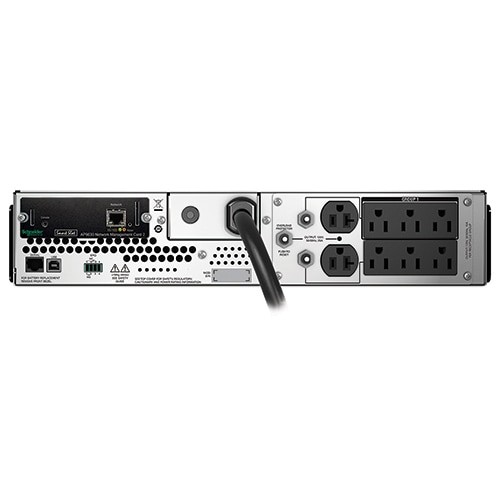 This rackmountable UPS comes preinstalled with an APC AP9630 SmartSlot Network Management Card. This card enables management of your UPS remotely by connecting it directly to the network. Up to eight users can simultaneously access the user interface via web browser to quickly and easily access the UPS, and up to three users can access the network command line interface.