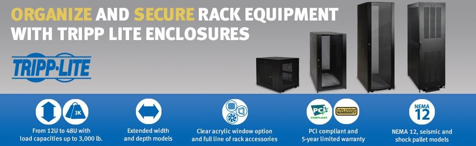 With a 33 inches depth, the SR24UB provides the space needed for mounting standard-size server equipment that is often too large for compact enclosure cabinets. The SR24UB’s standard 24 inches width is compatible with all 19 inches rack equipment. Its rails are adjustable in quarter-inch increments to accommodate equipment depths from 3 to 32.5 inches. Adjustment is quick and convenient—simply unscrew the rails, slide them to the desired depth and restore the screws. An easy-view depth index ensures consistent rail placement without requiring time-consuming measurements. The rails are capable of supporting up to 1000 pounds. of equipment with included installation hardware and feature square mounting holes. Each rack space within the enclosure cabinet is numbered for ready reference.