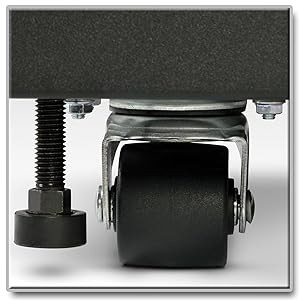 To simplify deployment, the SR24UB comes with casters and leveling feet. The casters allow the SR24UB to be easily maneuvered into the desired location, where it can then be secured in place by adjusting the leveling feet. The SR24UB has a 1000 pounds. rolling load capacity for rack equipment to be installed in the enclosure cabinet prior to final deployment. Note: the casters are intended for minor position adjustments within the final installation area only and are not designed for moving the enclosure cabinet over long distances.