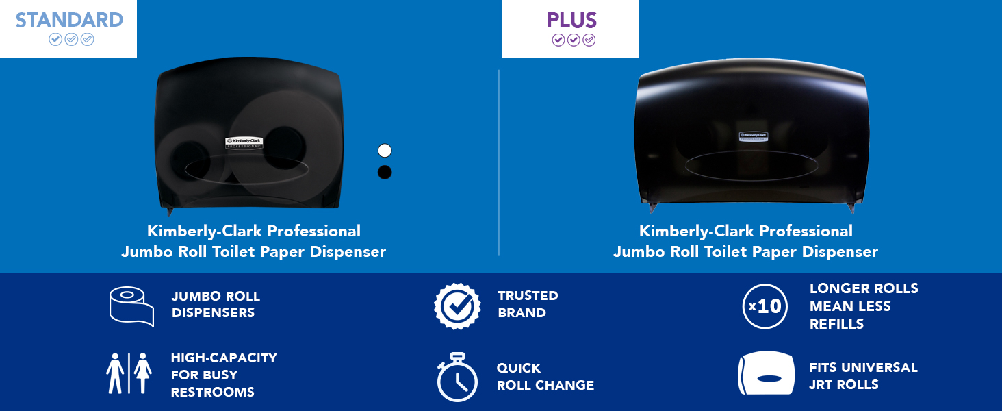 Cored JRT Combo Unit Bathroom Tissue Dispenser can be used with two JRT Jr. rolls or one JRT Sr. roll and a stub roll. An easy to use mechanism adjusts to meet the customer's needs. For Roll Size: 13"; 9 3/8"; Roll Type: Jumbo; Capacity (text): Holds Two 9 3/8" Rolls Or One 13" Roll Plus Stub Roll; Color(s): Smoke/Gray.