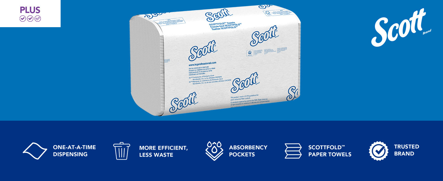 Scott® Pro™ provides state-of-the-art solutions to maximize productivity. Make wasted paper towels a thing of the past with Scott® Pro™ Scottfold™ Multifold Paper Towels. Their unique fold is designed for true one-at-a-time dispensing, every time. They reduce tabbing, tearing and multiple dispensing, which results in less waste – which is always good for your business' bottom line. Plus, since they unfold slightly as they dispense, so your guests will know that they're big enough to get the drying job done – with just one commercial paper towel. Scott® Pro™ Scottfold™ Bulk Paper Towels feature Absorbency Pockets™ with fast-drying ridges for excellent absorbency and hand drying performance. Scott® Pro™ Scottfold™ towels are a smart choice for your business!