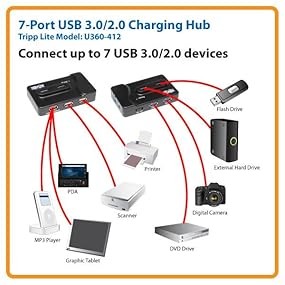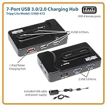 The Tripp Lite USB 3.0/2.0 Charging Hub assures that you get maximum performance from multiple USB 3.0 and USB 2.0 devices connected to a single computer. The U360-412 enables you to connect up to two USB 3.0 devices and four USB 2.0 devices through a single USB 3.0 port on a computer, while still leaving an open port to charge your iPad or other tablet. And with a top-mounted port specifically for thumb drives, this hub is ideal for every desktop. With no special software or complicated setup procedures, the hub is simple to use—just plug it in and you're ready! The U360-412 is manufactured to exacting specifications, using superior materials, to deliver full USB 3.0 performance for multimedia and other high-end applications.