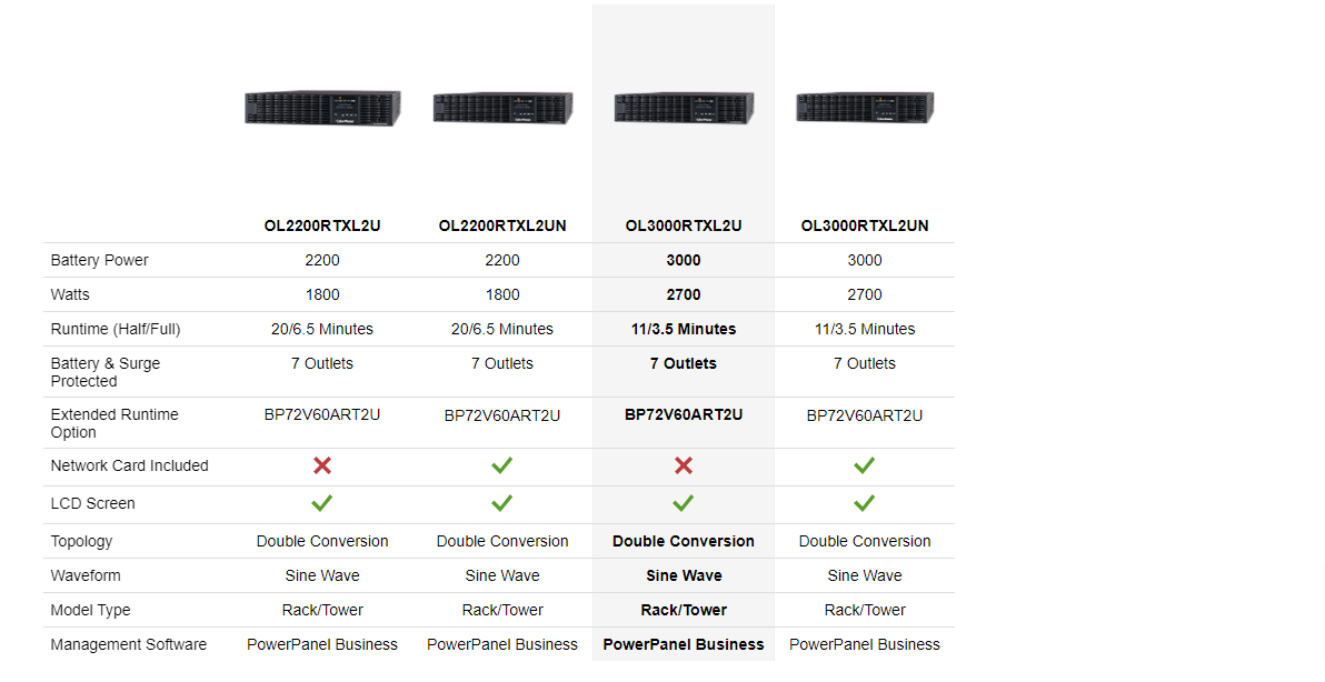 The optional BP72V60ART2U extended battery module can help extend runtimes. This UPS allows for up to ten added EBMs.