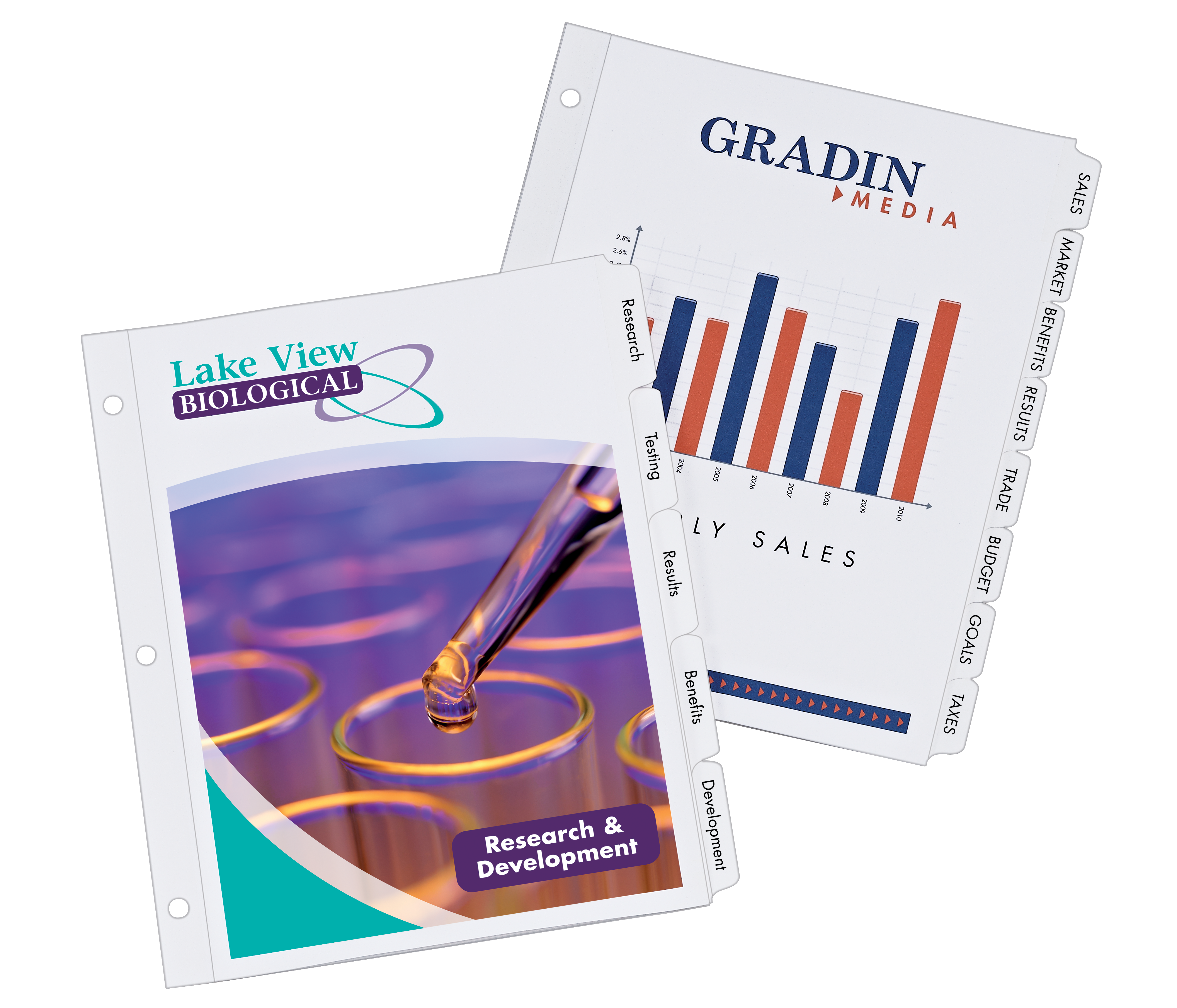 Easily print professional, customized dividers in minutes right from your computer. It's simple to add clear text and sharp graphics to both the tabs and divider body in just one pass through the printer. Just use free templates and designs at our website to easily format and print your dividers. You can print in either landscape or portrait format, making them ideal for presentations and reports. Also great for wedding planners, recipes or scrapbooks. Choose from a variety of styles to fit your exact need.