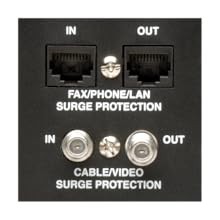 Data Line Surge ProtectionData lines connected to your equipment represent an unlocked 'back door', allowing surges to enter and damage or destroy sensitive electronic components. In addition to protecting against surges on the AC power line, this UPS system protects your equipment against surges on connected phone, network and coaxial lines. -The RJ45 jacks protect a phone, analog modem, DSL modem or Ethernet network line. -The coaxial connectors protect a cable TV, satellite or cable modem line. |