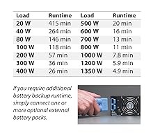 - Half-Load Runtime: This UPS system will support a 50% load (675W) for up to 14 minutes using the included batteries.