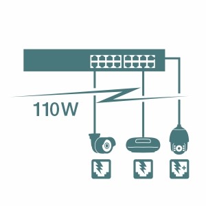 Supplies up to 30W of PoE+ power per port with a total power budget of 110W