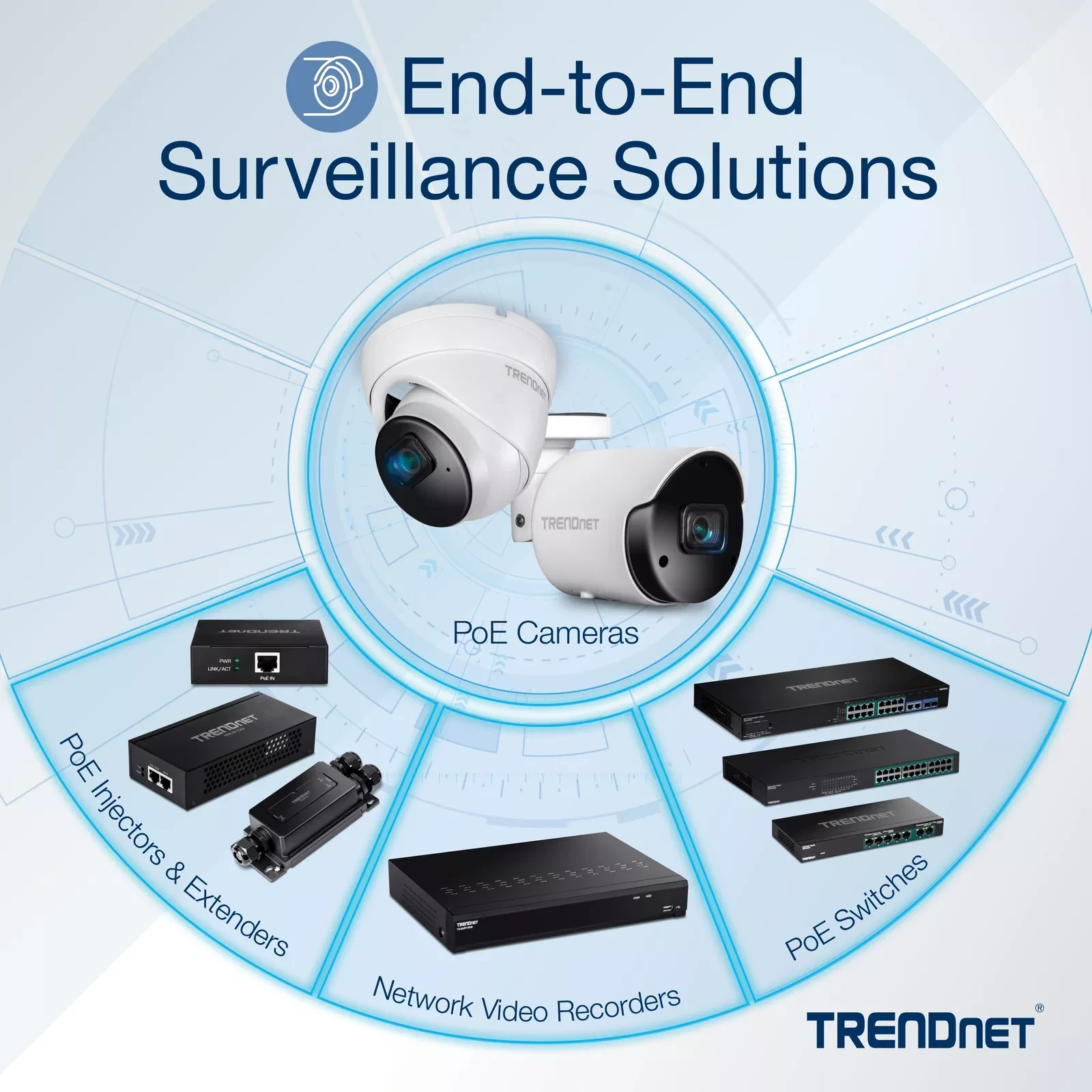 PoE PowerA 110W PoE power budget supplies up to eight Power over Ethernet devices. |