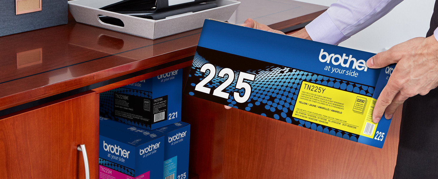 The TN225Y yellow toner cartridge provides professional laser print quality you can consistently rely on for up to 2,200 pages(1).