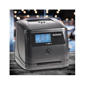 Minimize payroll processing time and eliminate errors with the 5000 Self Calculating Time Clock. Totals weekly, bi-weekly, semi-monthly, or monthly pay periods for up to 100 employees. Totals actual or rounded time, including 5, 10 and 15 minute rounding.