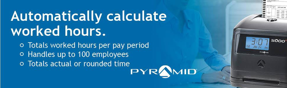 This time clock tracks and calculates worked time for weekly, bi-weekly, monthly or semi-monthly pay periods for up to 100 employees.