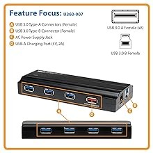 USB 3.0 ports support data transfer rates up to 5 Gbps, which 10x faster than USB 2.0. For older devices, the U360-007 is backward compatible with USB 2.0 and 1.1 standards. The U360-007 works with all Windows (compatible with Windows 10) and Mac OS computers equipped with a USB 3.0 port.