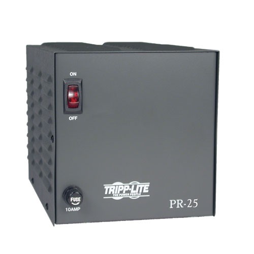 Get regulated, precise DC power from any AC input with Tripp Lite’s PR25 25-Amp DC Power Supply. The PR25 efficiently converts power from an AC source to 13.8 V DC, providing perfect input for sensitive single-sideband CB radios, mobile audio equipment, electronic design and quality control equipment, test bench equipment, low power VHF/UHF ham radios, point-of-sale displays, aquariums and more. With crowbar circuit overvoltage protection, automatic time-controlled overcurrent protection and a solid state, integrated circuit, the PR25 isolates connected equipment from potential power disruptions on the AC line. High-quality noise filtering creates very low noise operation so that components perform at their peak.
