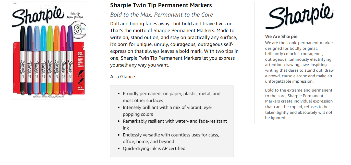 Made to mark and stand out on almost every surface, iconic Sharpie permanent ink is quick drying and water- and fade-resistant.