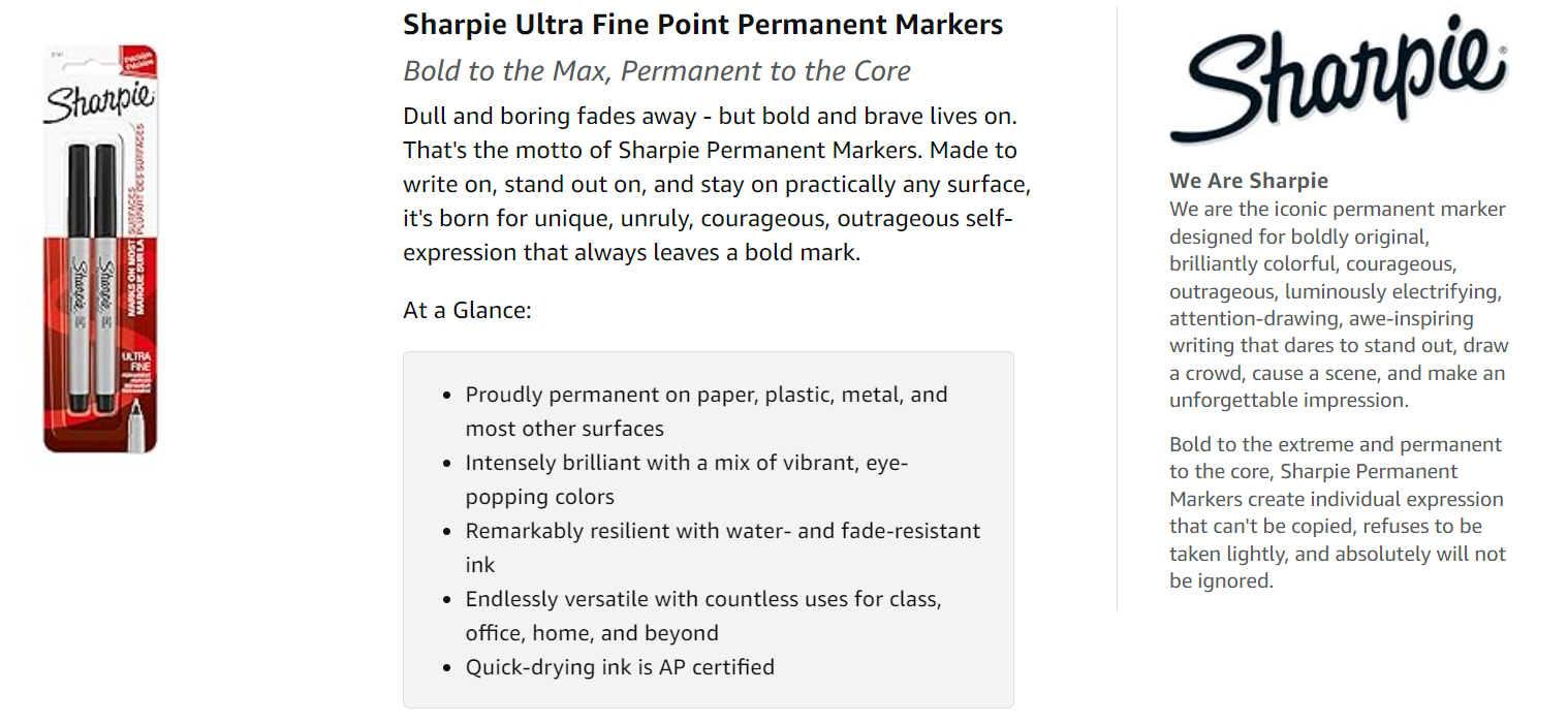 Made to mark and stand out on almost every surface, iconic Sharpie permanent ink is quick drying and water- and fade-resistant.