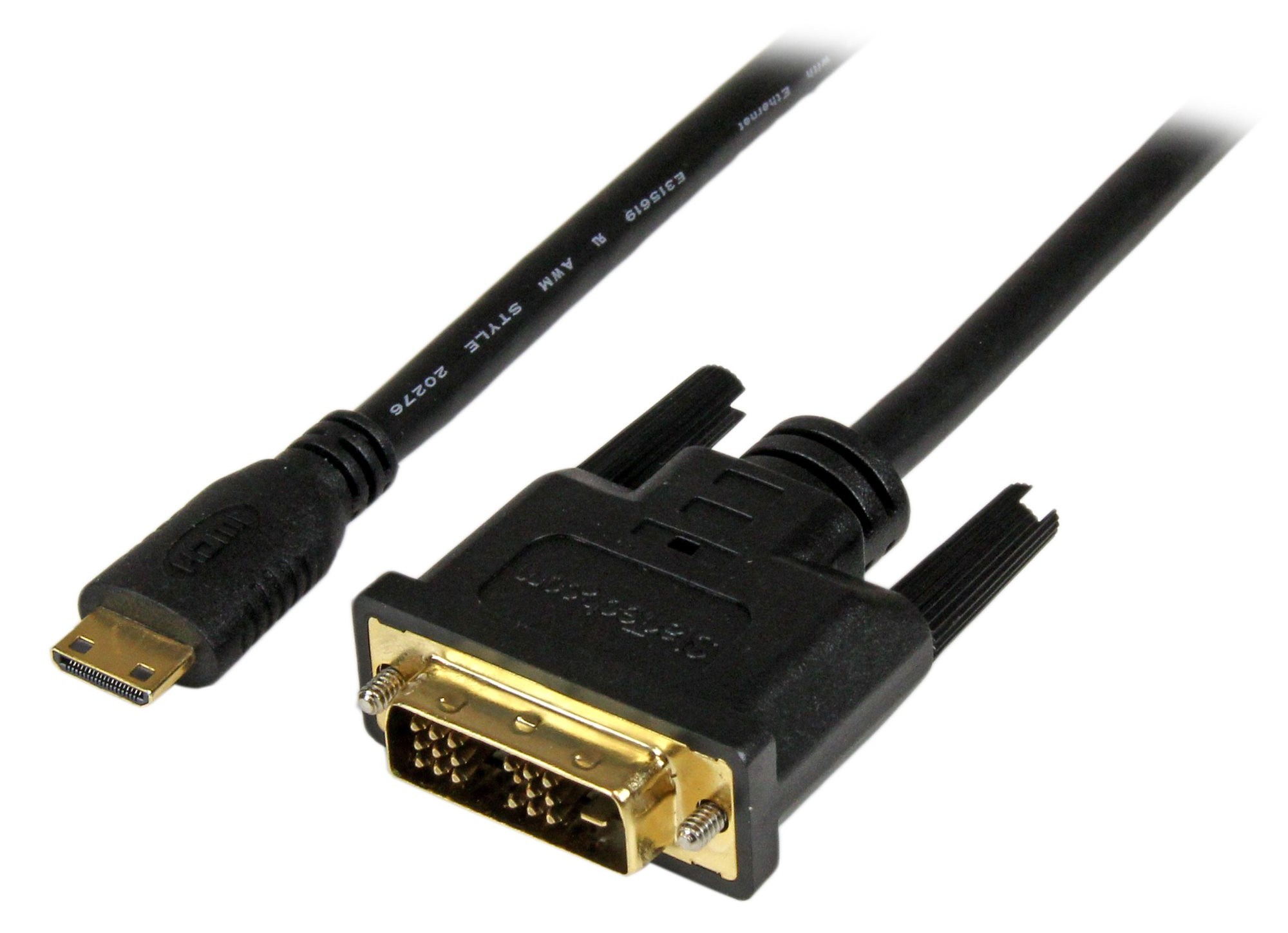 The HDCDVIMM1M 1m Mini HDMI® to DVI-D Cable enables you to view your pictures and videos from your HDMI Mini-equipped camera or other mobile device (Tablet, laptop, etc.) on a DVI-D capable display or projector. As an option, in order to incorporate audio with your video presentations you can use our 3ft (1m) Slim 3.5mm Stereo Audio Cable (MU3MMS).