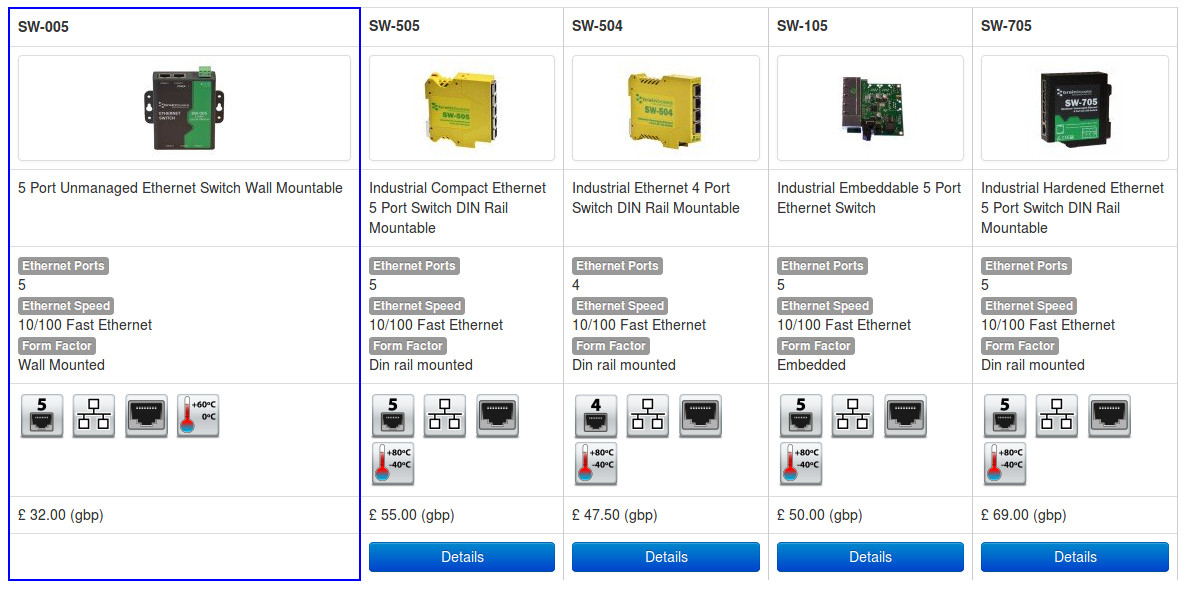 Light Industrial/Commercial Ethernet 5 Port unmanaged switch. Galvanically Isolated Ports. Power supply with wide voltage range means it can be powered from USB or on the 24V factory floor. Power terminal is removable with for easy wiring. Power consumption is optimised based on the status of the link device. No software required. Ideal for factory floor, in vehicle and marine applications. Wall mountable using mounting screw holes, optional DIN Rail mount accessory available (see MK-048).