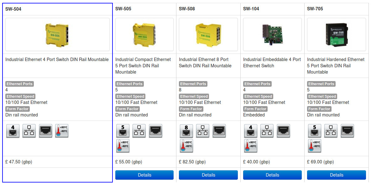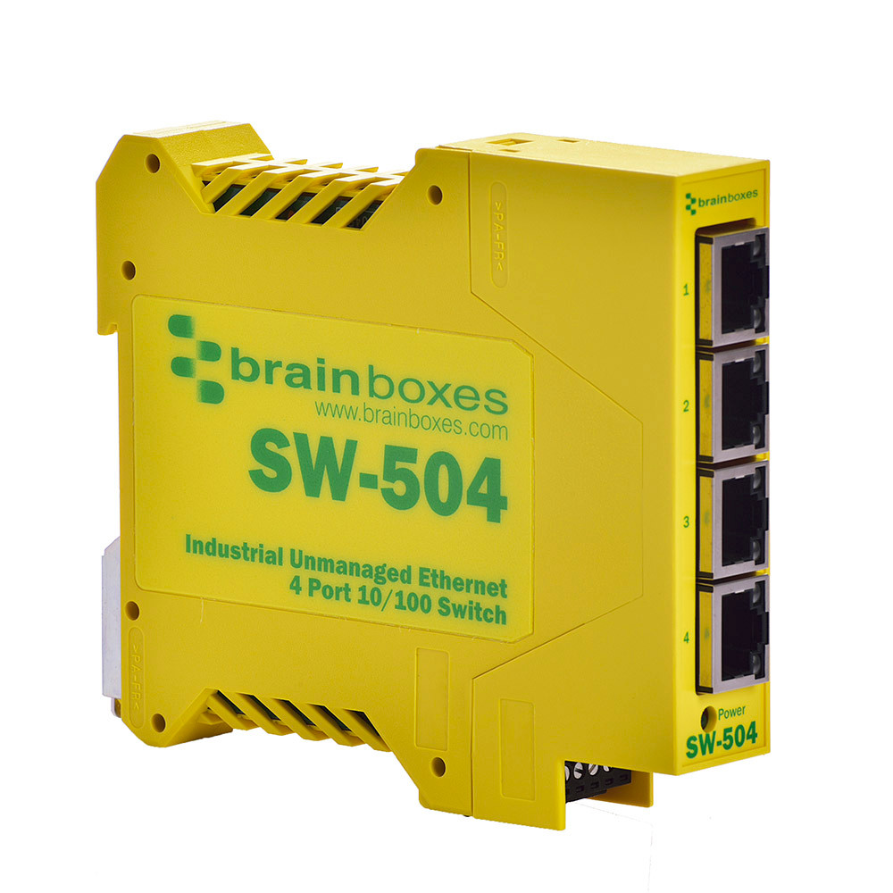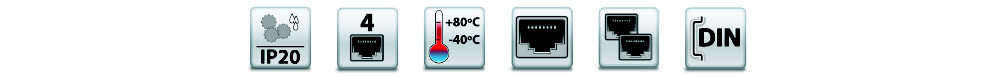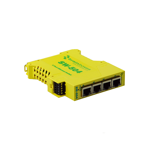 Industrial Ethernet 4 Port unmanaged switch. Galvanically Isolated Ethernet Ports capable of 10/100 Mbps. Industrial temperature range of -40°C to +80°C (-40°F to 176°F) and dual input redundant power supply with wide voltage range means it can be powered from USB or on the 24V factory floor. Power terminal is removable with numbered pins for easy wiring. Power consumption is optimised based on the status of the link device. No software required. Ideal for factory floor, in vehicle and marine applications.