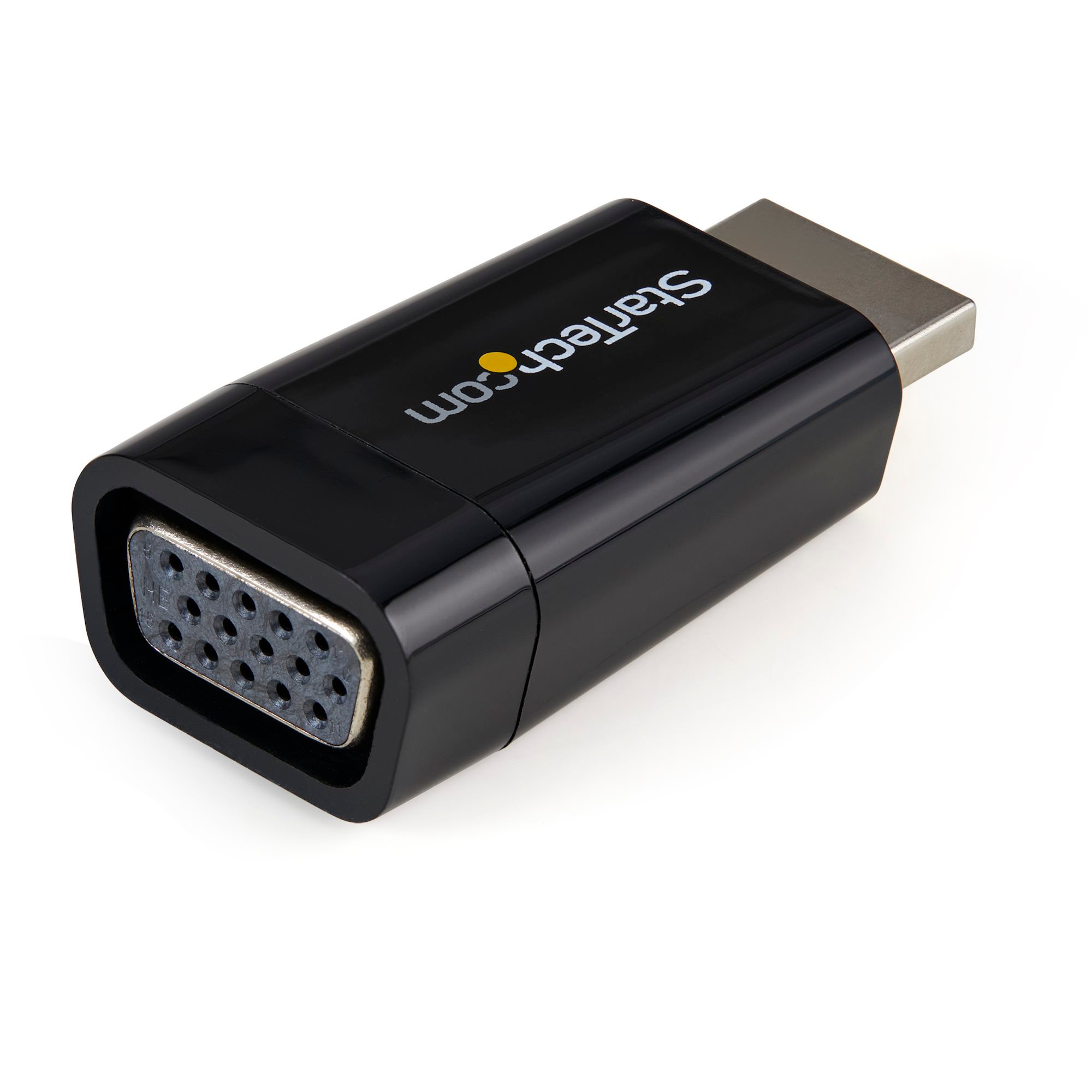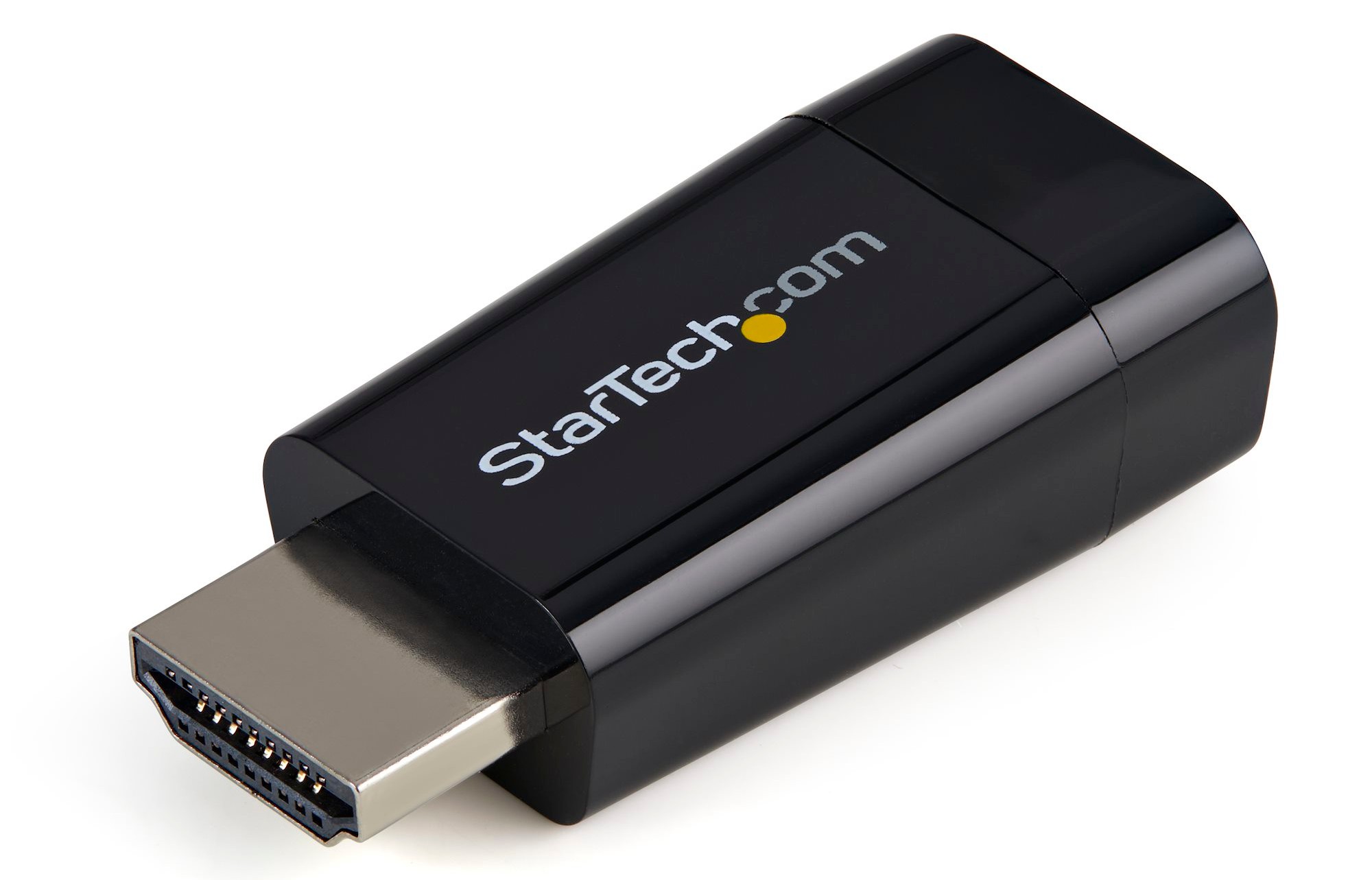 With no external power adapter required, and a small form factor design, this portable HDMI to VGA adapter is a great accessory to have on-hand in your laptop carrying case. Plus, this easy-to-use converter supports plug-and-play installation, which speeds up the installation time and eliminates the worry of having driver software ready on any computer.