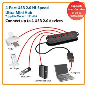 Connect the U222-004 to your computer and you’ve got 4 downstream ports for fast, efficient data transfers at speeds up to 480 Mbps. And the U222-004 is backward compatible with USB 1.1 devices, which means you can keep using older peripherals while getting maximum high-speed performance from new devices. This makes the U222-004 ideal for a wide range of USB devices, including flash drives, external hard drives, external DVD players, MP3 players and digital cameras.