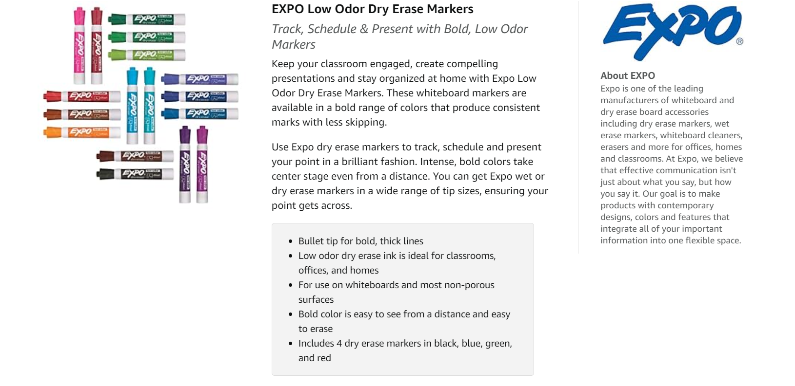 From important client meetings to brainstorming and strategic planning sessions, you can count on reliable Expo dry erase markers. The #1 dry erase marker brand, the white board markers create consistent, easy-to-read lines and erase cleanly from most non-porous surfaces.