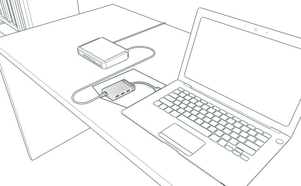 Easily connect up to three USB 3.0 devices to a USB 3.0-enabled laptop or desktop PC