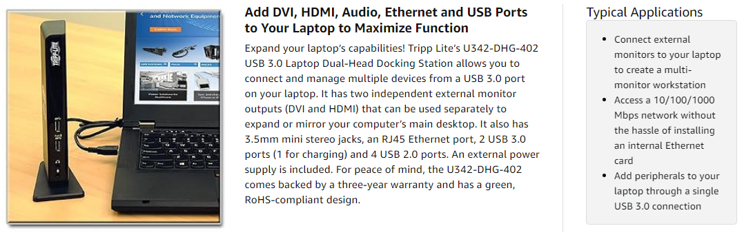 The U342-DHG-402 is manufactured in compliance with strict RoHS specifications, reflecting Tripp Lite’s commitment to environmental responsibility. For peace of mind, it comes backed by a three-year warranty.