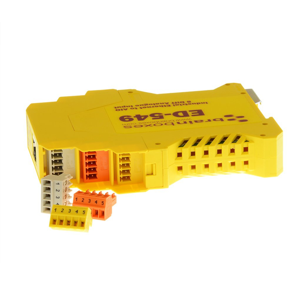 Ideal for all kinds of industry standard sensors and transducers. The ED-549 has 8 Analogue Inputs + RS485 Gateway. It is suitable for high-precision measurements of voltages and currents. Most parameters in the real world are measured using sensors generating analogue outputs. Brainboxes ED-549 takes these real world signals and turns them into data on your network. As well as the popular 0-10V and 4-20mA input devices, the inbuilt Programmable Gain Amplifier (PGA) allows full scale signals as small as ±75mV to be resolved to 12 bit accuracy across 8 analogue inputs. Each channel is individually configurable for voltage or current input with its own programmable gain.