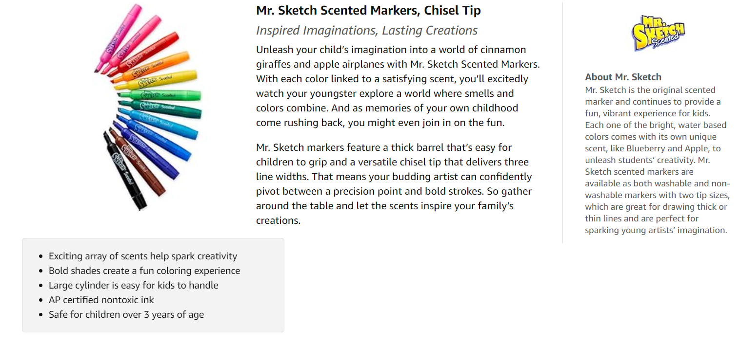 Stimulating ScentsOpen the box to discover fun scents like Yellow Banana, Red Cherry and Green Mint. |