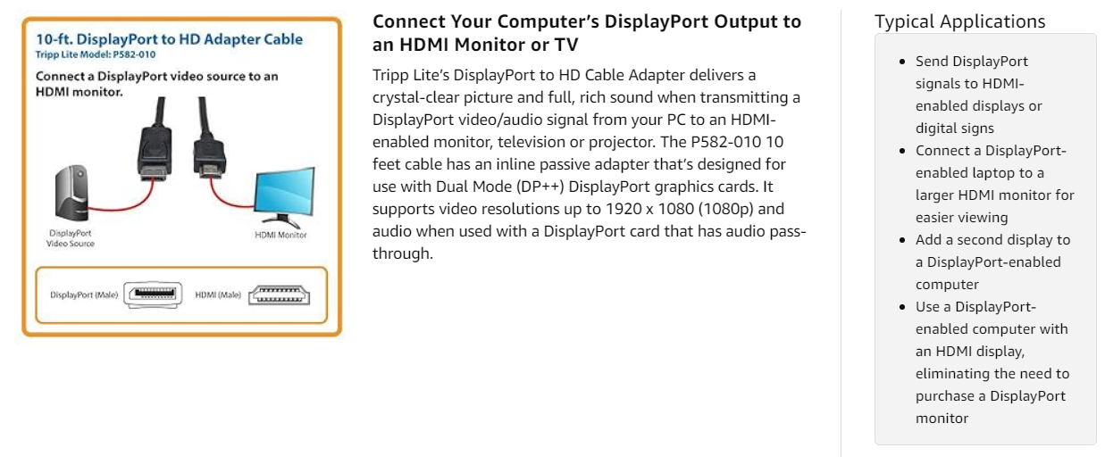 The P582-010 comes backed by a one-year warranty and is manufactured in compliance with strict RoHS specifications, reflecting Tripp Lite’s commitment to environmental responsibility.