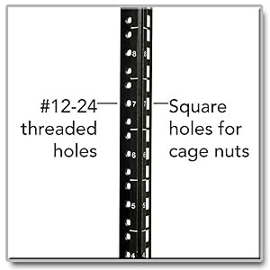 The SRW15US is compatible with all standard 19 inch rack equipment and is designed for simplified equipment installation. Its front and rear pairs of vertical mounting rails adjust in quarter-inch increments to accommodate equipment depths of 3 to 20.5 inches. Adjustment is quick and convenient—simply unscrew the rails, slide them to the desired depth and restore the screws. The rails feature square mounting holes and each rack space within the enclosure cabinet is numbered for easy reference.