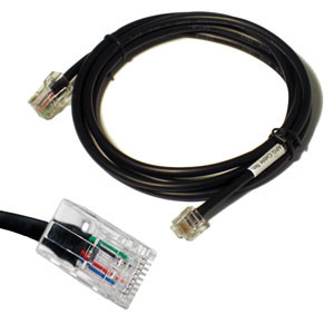 The Interface cable measures 5 ft. long and has an 8-pin RJ45 male plug at one end for connecting to the cash drawer and a 6-pin RJ12 female plug for connecting to the receipt printer or terminal.